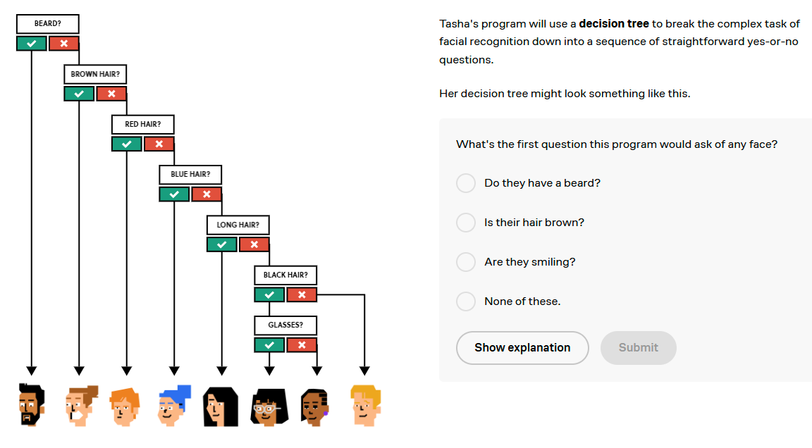 If you want to get the latter person onto code, unless they have the intrinsic motivation to dig through Harvard CS50 and deal with its inaccessiblity and complexity, you need to introduce them more slowly, via concepts they already understand. The example above is Brilliant.